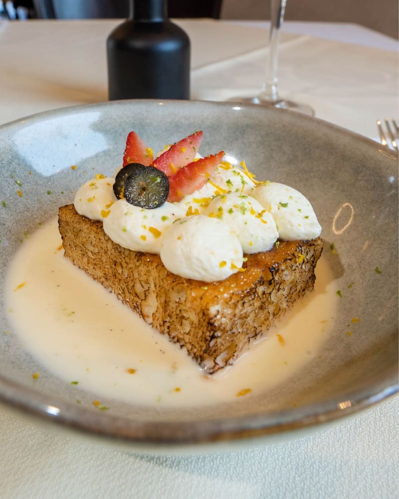 En la cocina está Marcia Plaza, quien propone una carta mediterránea con acento italiano, donde destacan preparaciones como los Locos en Chardonnay y los Spaghetti Frutti di Mare. Su cocina busca el equilibrio entre creatividad y tradición, con productos de calidad y una presentación que realza cada sabor.