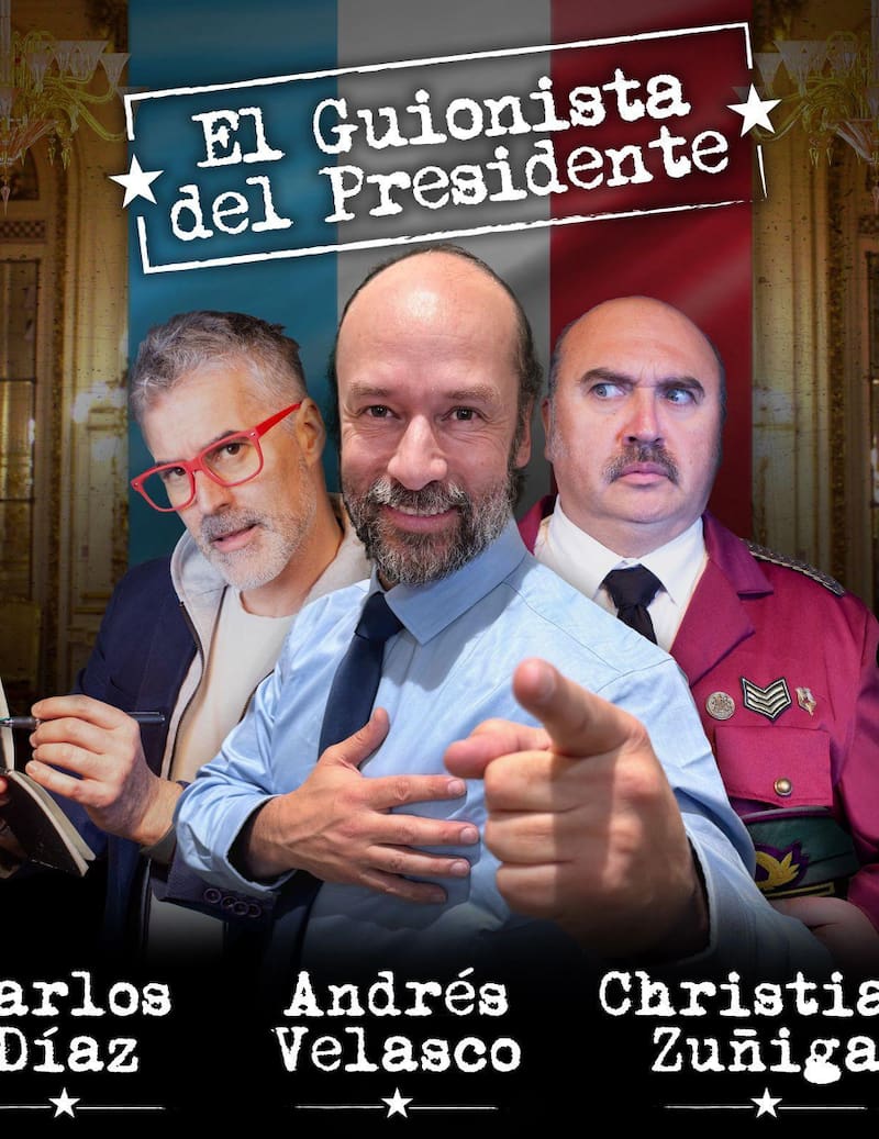 Fechas: Del 04 de octubre al 06 de noviembre / 18 de octubre no hay función | Horarios: viernes y sábado a las 20:30 hrs. | Duración: 110 minutos | Edad recomendada: +14 años | Elenco: Andrés Velasco, Carlos Díaz y Christian Zúñiga | Entrada general: $22.000 / Compra de entradas aquí