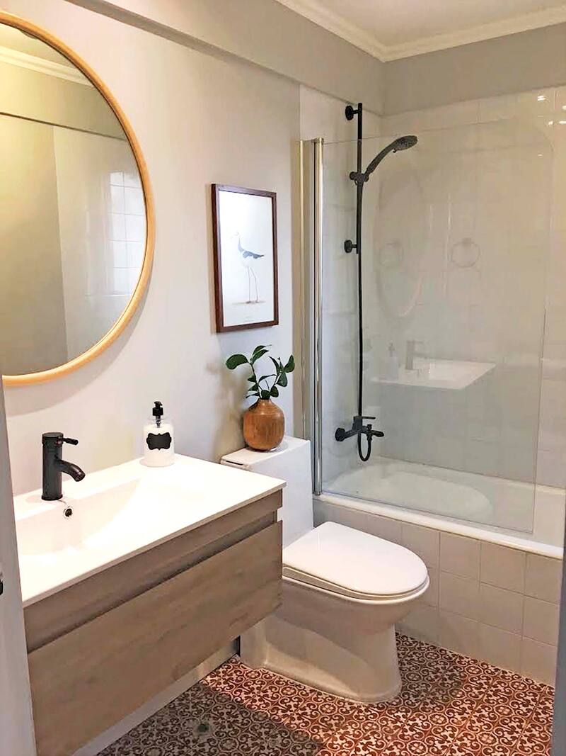 6. Si el WC y lavamanos están en buen estado, se puede reemplazar solo las griferías. Hay negras, doradas o retro, entre otras.