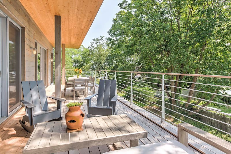 Su casa se ubica en Greenport, Long Island, una comunidad pequeña y costera que disfruta de las playas del río Peconic, calles tranquilas, arboladas, buenos restaurantes y construcciones en madera de 2 pisos con ático. Una opción más mesurada y flexible respecto a los acaudalados Hamptons y a una distancia muy similar de la Gran Manzana.