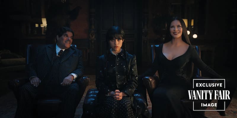 Si bien el streaming ya había mostrado cómo se verá la actriz Jenna Ortega como Wednesday, ahora la plataforma y Vanity Fair compartieron una nueva foto que nos muestra al núcleo de la Familia Addams incluyendo a Catherine Zeta-Jones como Morticia, Luis Guzmán como Gomez e Isaac Ordonez como Pugsley, además de Ortega como Wednesday.