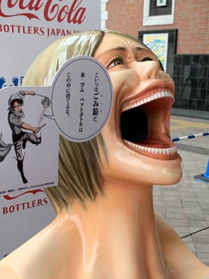 Pero la idea de Coca-Cola Japón y las autoridades de Oita es que estos basureros de titanes no solo sirvan para llamar la atención de los fanáticos de Attack On Titan, sino que también quieren que constituyan un incentivo al reciclaje. Después de todo, estos basureros son parte de un proyecto medioambiental llamado “Change for the Blue” y están ubicados junto a máquinas expendedoras para que las personas puedan usarlos para botar desechos como botellas plásticas.