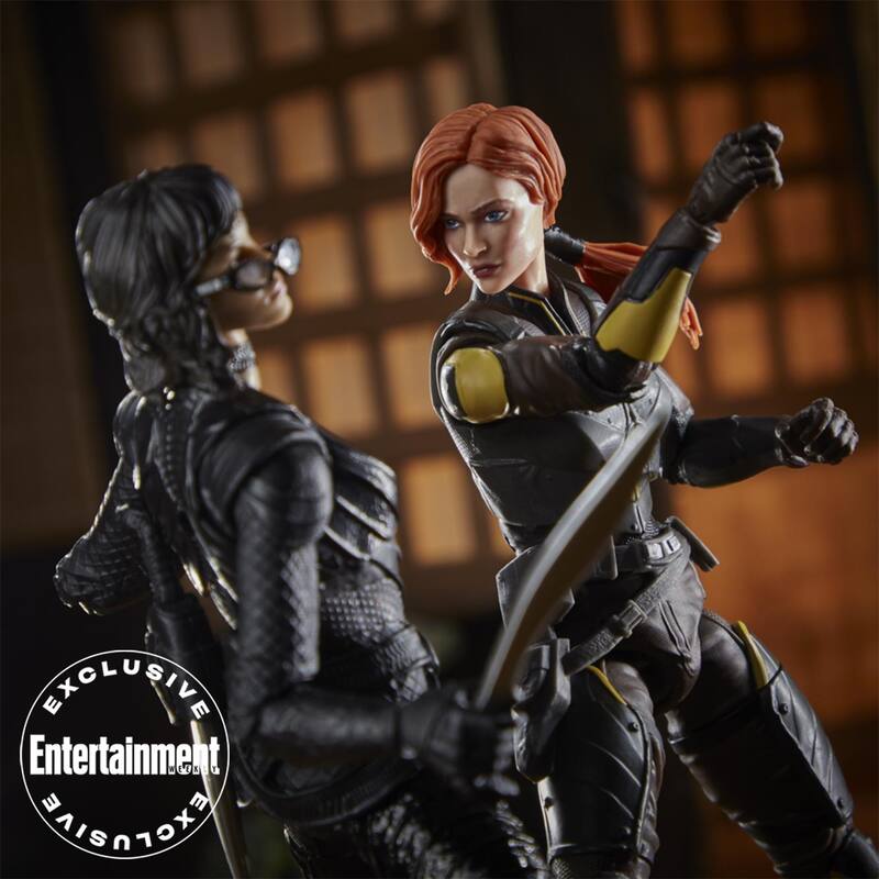 Una de las figuras fue revelada durante el evento Hasbro Pulse Fan Fest, en donde el actor Henry Golding hizo un unboxing de la figura basada en Snake Eyes. Dentro de las demás foto se pueden ver representaciones de Storm Shadow, interpretado por Andrew Koji, Scarlett, interpretada por Samara Weaving, Baroness, interpretada por Ursula Corberó, y Akiko, interpretada por Haruka Abe.