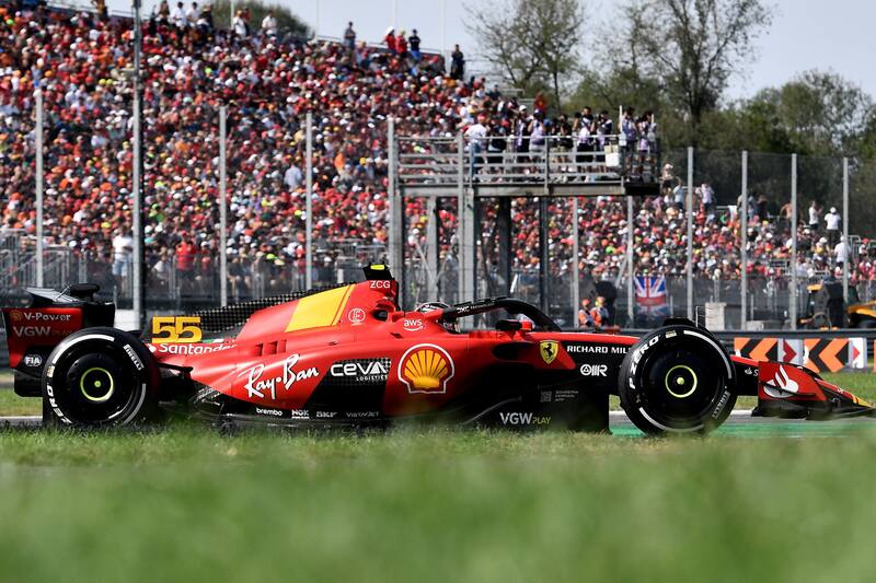 Carlos Sainz corriendo a toda velocidad en Italia. La frase puede corresponder al accionar del español en el Gran Premio de Italia, donde consiguió el tercer lugar, pero en realidad corresponde a un hecho que le ocurrió luego de la carrera, en su arribo a Milan.