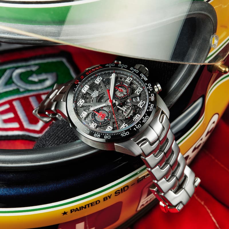 No se trata de coincidencias ni mucho menos. La relación entre TAG Heuer y Senna viene desde 1991, año del tercer título. La campaña que ambos estrenaron se llamó Don't Crack Under Pressure (No cedas bajo presión). La firma suiza resalta que esta característica sigue siendo la encarnación perfecta del estado mental y la inspiración de su colección de exclusivos relojes Ayrton Senna.