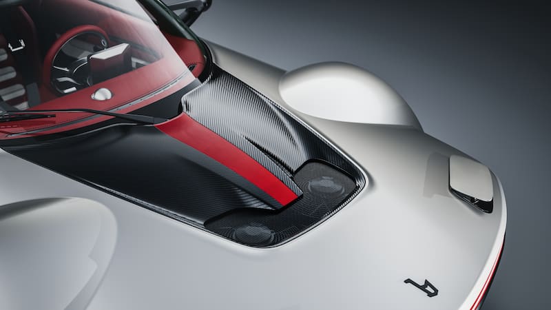 El modelo se ofrece en dos versiones: Barchetta y Targa. La primera es completamente abierta y prioriza la relación directa entre conductor, entorno y mecánica. La Targa, en cambio, suma un techo removible de fibra de carbono que permite mayor versatilidad sin alterar la silueta en cuña que define al auto.