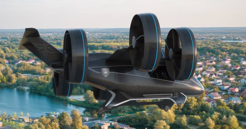 El Bell Nexus combina un diseño futurista con seis rotores que le permiten elevarse hasta con cinco ocupantes. Estas especies de hélices -dispuestas de a tres por lado- son giratorias, de forma que al momento del despegue le entrega impulso vertical y, para desplazarse, desarrollan la misma función que las turbinas de un avión.
