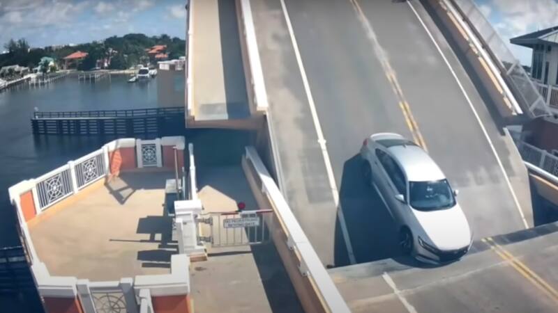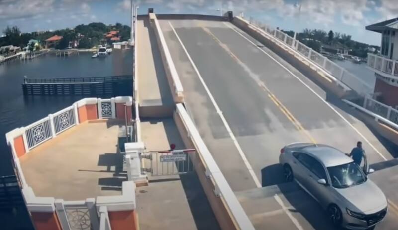 Según se puede ver en el video que dio a conocer la agencia de noticias WPTV, un conductor quedó atrapado al momento de que se levantaba un puente, provocando la desesperación de la persona, quien estuvo a un paso de escapar de un salto del Honda Accord en el que viajaba.