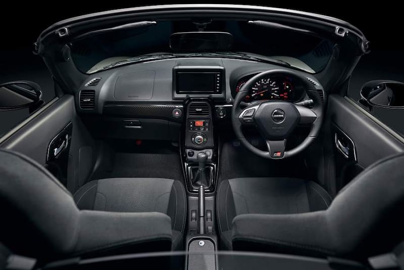 En el apartado de equipamiento, el roadster nipón que también en medidas está limitado por la ley local, midiendo 3.395 mm de largo y pesando menos de 850 kilos, sorprende con detalles como suspensión de tipo deportiva, asientos Recaro de competición, llantas suministradas por BBS y un volante también de corte sport de la marca Momo.