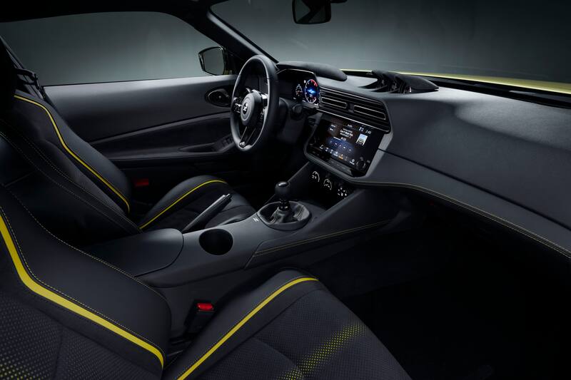 En toda la cabina hay detalles en amarillo, que contrastan con el negro que Nissan decidió dotar al perfilador de la dinastía Z de 50 años.