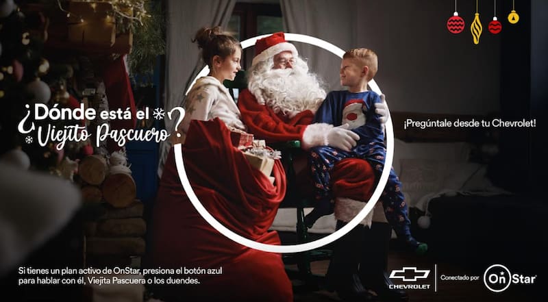¿Dónde está el Viejito Pascuero?, así se titula la nueva campaña de OnStar, plataforma tecnológica de seguridad exclusiva de los vehículos Chevrolet. Hasta el 22 de diciembre, los usuarios de esta tecnología -y con solo presionar el botón azul- podrán consultar en tiempo real la ubicación de Santa Claus y, de esta forma, saber si está próximo a visitar su ciudad para dejar los presentes bajo el árbol de Navidad.