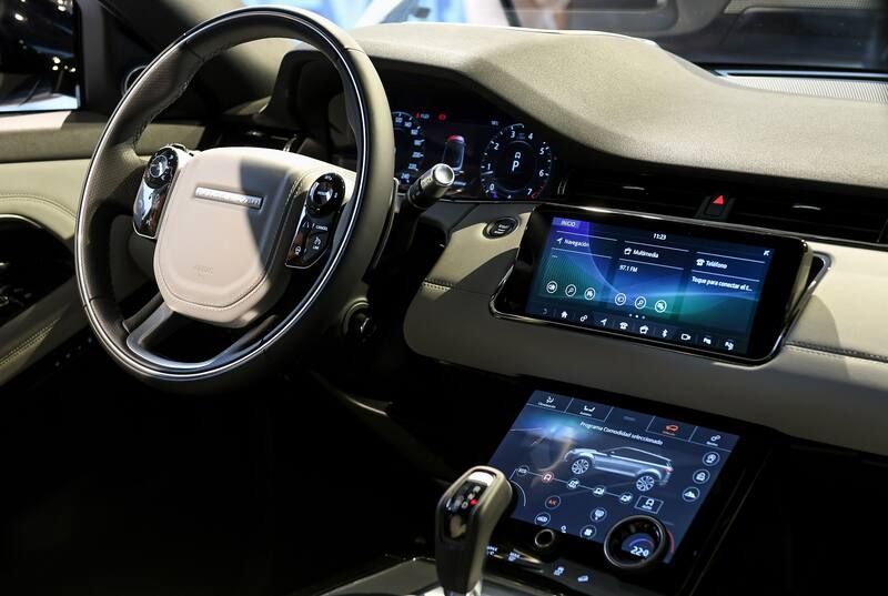 En el interior del Evoque de segunda generación también hay una gran evolución en el diseño y en los materiales. Gracias al sistema Touch Pro Duo 2 y el display de 12'' hay pocos botones. Un punto llamativo es el espejo retrovisor interior digital, que se activa con solo pulsar un botón.