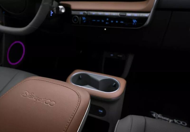 - Logotipo de Disney100 grabado en los reposacabezas de los asientos delanteros y en la consola central