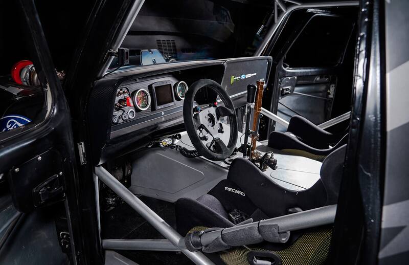 Debemos recordar que la Hoonitruck apenas mantiene la silueta de la Ford F-150 del 77 en la que está inspirada. Todo lo demás ha sido construido a medida, partiendo por un chasis tubular recubierto a base de paneles de aluminio para la carrocería.