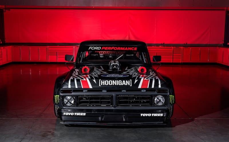 Tras el término de su relación profesional con Ford, Ken Block se está desvinculando de sus famosas máquinas con la firma del óvalo azul. La última en salir a la venta es nada menos que la Hoonitruck, la cual toma como base una Ford F-150 de 1977, pero modificada y vitaminizada hasta el imposible para superar los 900 Hp.