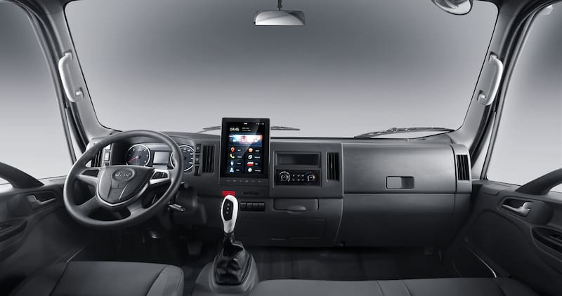 Su cabina corta abatible está pensada totalmente para brindar mayor comodidad al conductor y a los ocupantes. En su habitáculo, con espacio para tres personas, hay aire acondicionado, alzavidrios eléctricos, computador a bordo, comandos de radio al volante y radio MP5 con conexión USB.