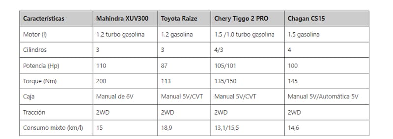 En temas de consumo, no hay discusión que el Toyota Raize sacaría un poco de ventaja, pero nuevamente el Mahindra XUV300 presume de tener un motor más eficiente que sus competidores.