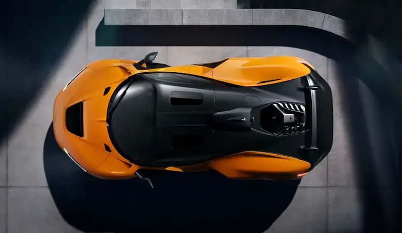 En el interior, los asientos fijos y los reposapiés elevados confieren al W1 un aire de competición. Los pedales, el volante plano y los mandos principales se desplazan. Hay una aleta de puerta en voladizo diseñada para maximizar el espacio interior, parasoles de fibra de carbono de sólo 3 mm de grosor y el W1 tiene los pilares A más estrechos de cualquier McLaren.