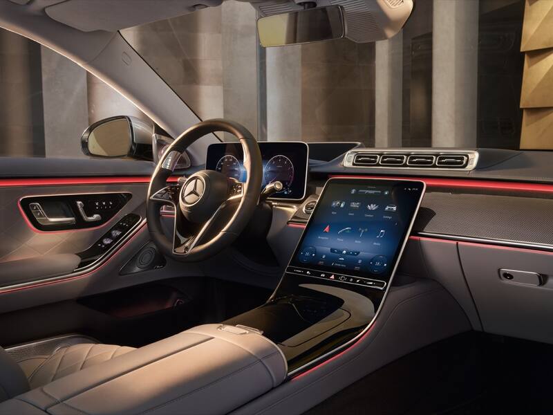 La nueva Clase S de Mercedes-Benz, además cuenta con una nueva generación de volante, y sistema de sonido surround Burmester 3D, con 15 altavoces, aunque se puede solicitar un sistema de sonido 4D del especialista Burmester con 30 altavoces.