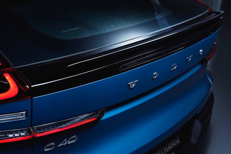 Por fuera, el crossover ensamblado en la planta de Ghent, en Bélgica, lleva elementos muy propios del lenguaje de diseño de Volvo, tales como los característicos faros LED con el martillo de Thor y las luces traseras de diseño vertical, y otros muy innovadores como la citada caída deportiva del techo, que está acompañada de un doble spoiler (por encima y por debajo de la luneta), que incide en un ajustado coeficiente aerodinámico del modelo, apenas del 0,26 Cx.