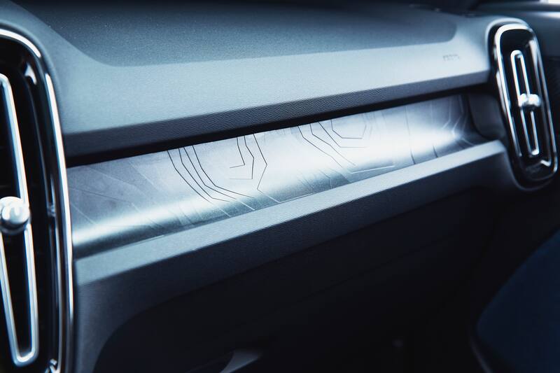 El tablero también es un guiño a la herencia escandinava. Aquí, el Volvo C40 cuenta con un tablero con gráficas retroiluminadas que toma como base la topografía del Parque Nacional de Abisko, una reserva al norte de Suecia, situada a 200 kilómetros del Círculo Polar Ártico. Considerado como uno de los últimos grandes paisajes vírgenes de Europa, se dice que Abisko es uno de los mejores lugares para observar las auroras boreales gracias a la ausencia de contaminación lumínica y a los vientos fuertes que soplan las nubes.