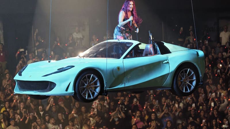 Obviamente, la personalización también es parte del 812 GTS, con el que incluso apareció volando en un concierto. En este caso, fue pintado de una especie de color turquesa en degradé para hacer juego con el pelo que llevaba por esos días la cantante.