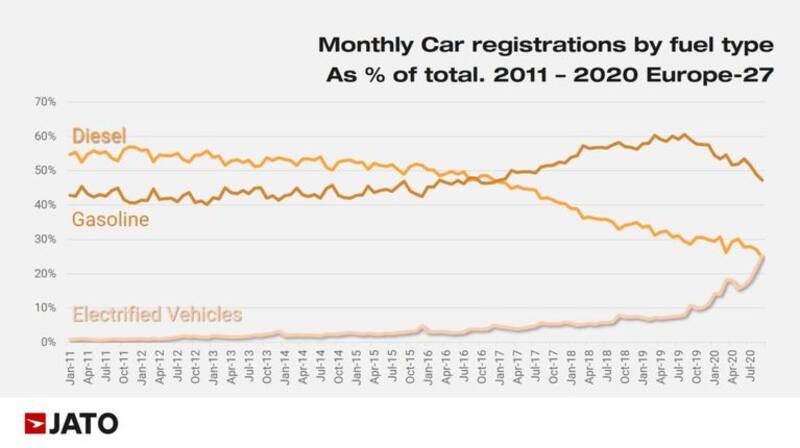Según la consultora Jato Dynamics, los datos de 27 mercados europeos muestran que las matriculaciones de vehículos electrificados (eléctricos e híbridos) fueron superiores a las de los diésel, por lo que habrían señales claras de que Europa estaría lista para una revolución eléctrica.