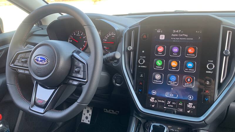 Una de las grandes novedades que tiene este WRX de Subaru es la enorme pantalla central que domina el sistema de info entretención. Se trata de una pantalla vertical tipo tablet de 11,6′', la misma que ya habíamos visto en el Outback.