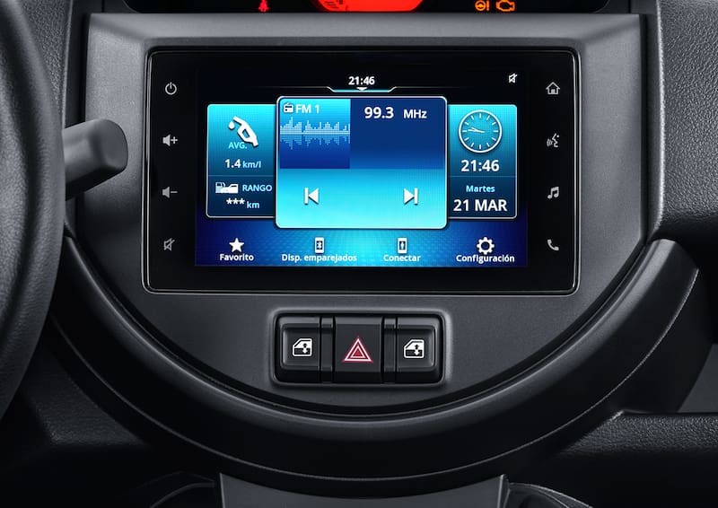 En él se aprecia un tablero con velocímetro digital, volante con control de audio y manos libres, espejos exteriores eléctricos, además de un nuevo sistema de infoentretenimiento que incluye radio de fábrica con pantalla de 7″ y conectividad para Apple CarPlay y Android Auto.