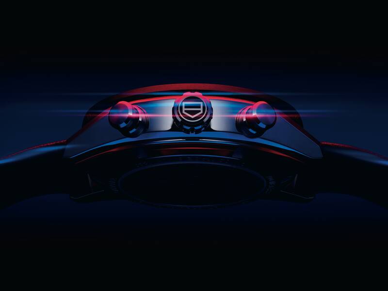 Dentro de esas referencias destaca, por ejemplo, el logotipo de la marca alemana en el bisel o la forma del rotor que recuerda a una llanta; la esfera emula a través del gris y su rugosidad el asfalto, mientras que los detalles rojos hacen referencia a la deportividad. Así también, los dígitos arábigos nos recuerdan los del cuadro de mandos de los deportivos de la casa de Stuttgart.