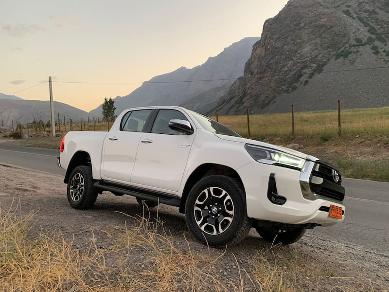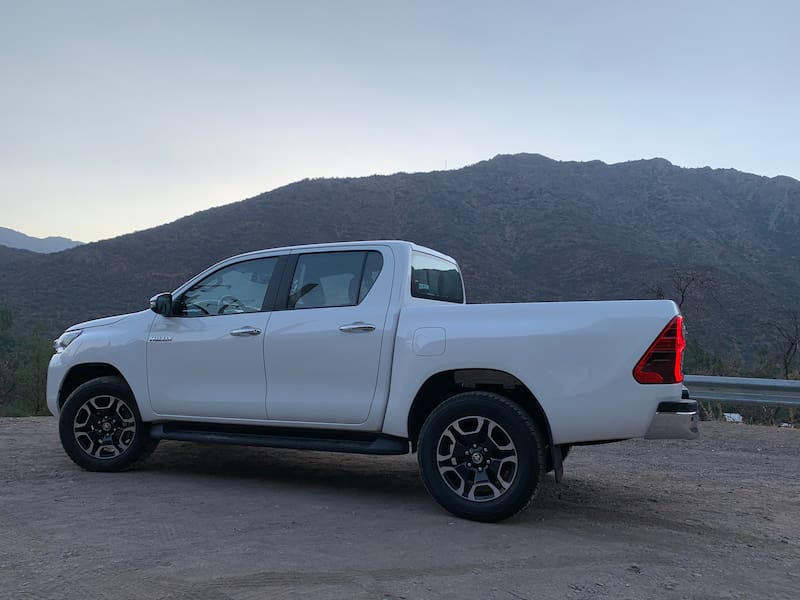 La suspensión, por su parte, se siente firme y amigable en carretera y fuera de ella. La llevé una tarde al Cajón del Maipo, pero… cómo son las cosas, terminé en la misma ciudad -antes de subir- probando su nobleza en un lomo de toro no pintado ni señalizado. En mi auto probablemente todavía estaría llorando, pero la suerte es que iba en esta Toyota Hilux preparada para los tratos más duros, incluso los propios que imprimen conductores que se saben no dueños.