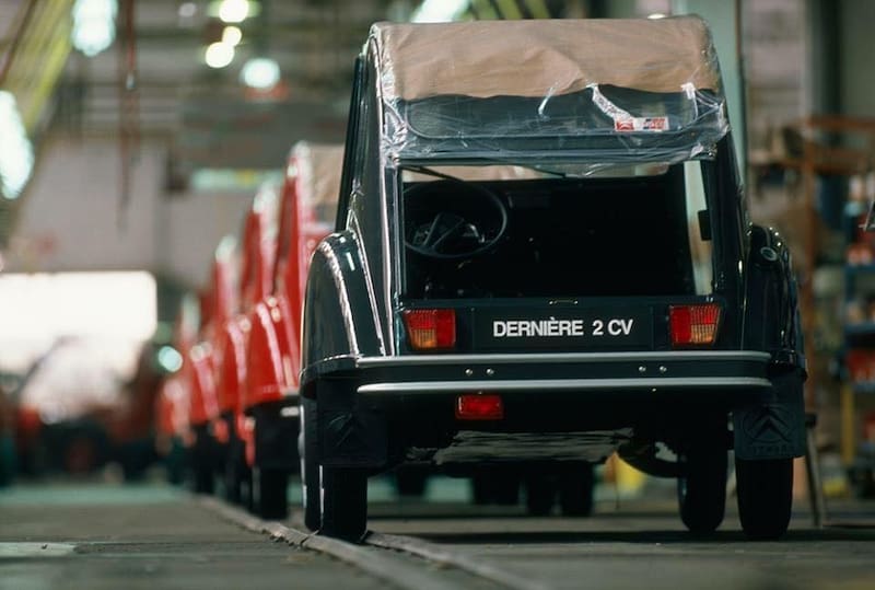 El 27 de julio de 1990, después de innumerables modificaciones y mejoras, cesó a nivel global la fabricación de la Citroën 2CV. Fueron 41 años, ocho meses y 21 días de producción ininterrumpida.