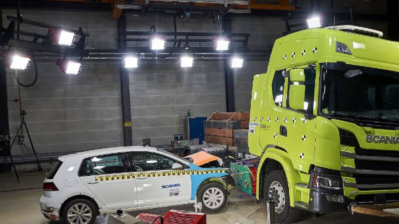 Así lo revela Scania en un video donde se muestra el momento en que el Golf de séptima generación choca contra el lateral del camión: