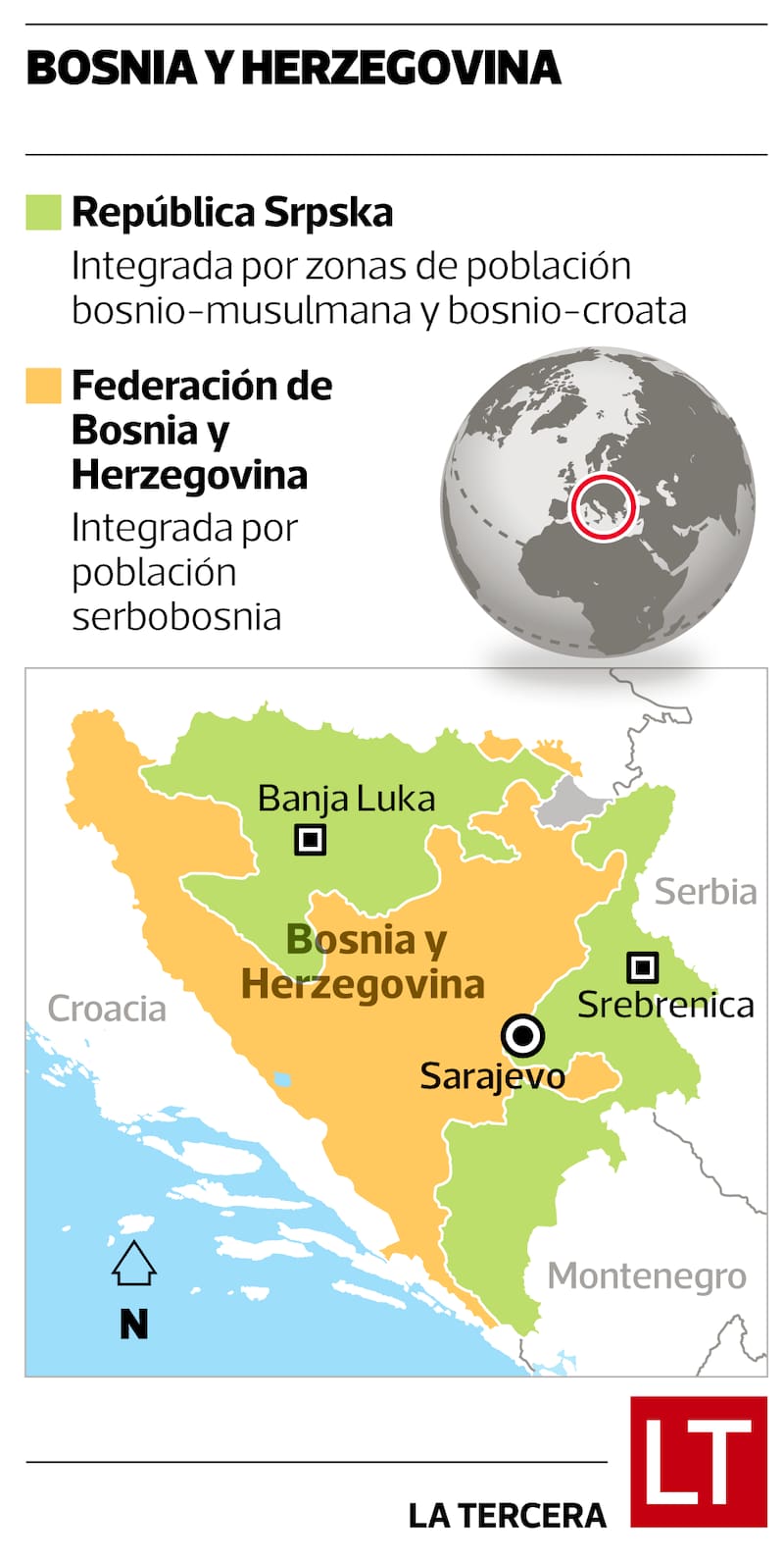 El resultado fue el Acuerdo de Dayton en 1995, que creó una Bosnia dividida en dos entidades: la Federación de Bosnia y Herzegovina (de mayoría bosniomusulmana y bosniocroata), y la República Srpska (de mayoría serbobosnia), ambas conectadas por un débil gobierno central en Sarajevo y supervisadas por la figura del Alto Representante Internacional, Christian Schmidt.