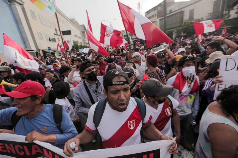 Desde la destitución de Castillo el miércoles pasado, decenas de personas se congregan en la Plaza San Martín para pedir el cierre del Congreso y nuevas elecciones. “No reconocemos la usurpación de la señora Dina Boluarte, no la reconocemos como presidenta del Perú, queremos nuevas elecciones, donde el pueblo tenga la oportunidad de elegir a su gobernante. Cuando Castillo disolvió el Congreso, era un pedido que el pueblo reclamaba. Estamos cansados, porque el Congreso se convirtió en un nido de oportunistas”, dijo a La Tercera Inés, una manifestante que se encontraba protestando en el centro de Lima.