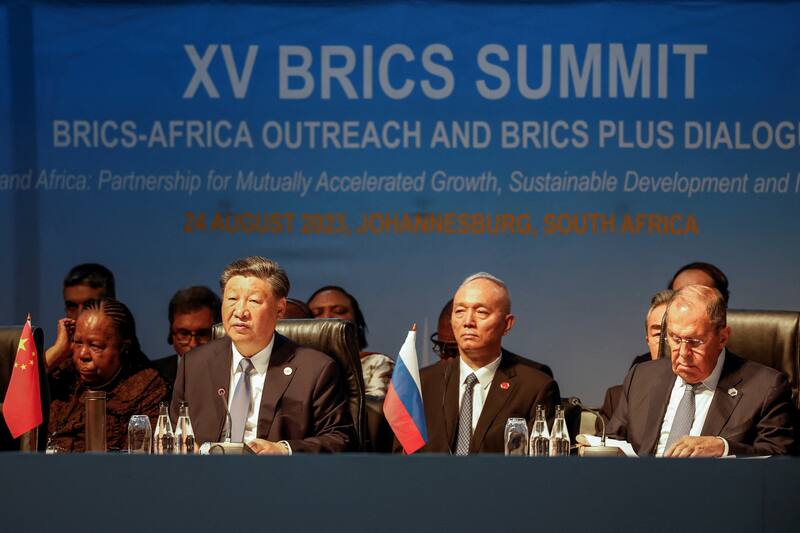 El resultado más sorprendente y trascendental de la cumbre fue el anuncio de que el bloque, formado por Brasil, Rusia, India, China y Sudáfrica, acordó invitar a seis nuevos miembros -Argentina, Egipto, Etiopía, Irán, Arabia Saudita y Emiratos Árabes Unidos- a unirse en 2024. El BRICS+, como se denomina la agrupación ampliada, representará una parte significativamente mayor del PIB mundial que el club del G7 de democracias industriales avanzadas.