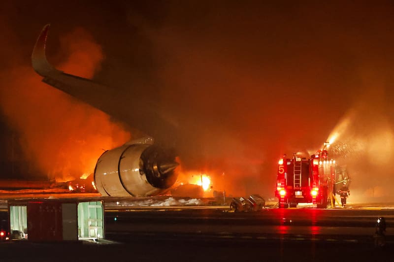 El avión de Japan Airlines había chocado contra un avión de la Guardia Costera de Japón que estaba en la misma pista, cargado con alimentos, agua y otros suministros de socorro para la región de la costa del Mar de Japón que fue sacudida por un terremoto el día anterior.
