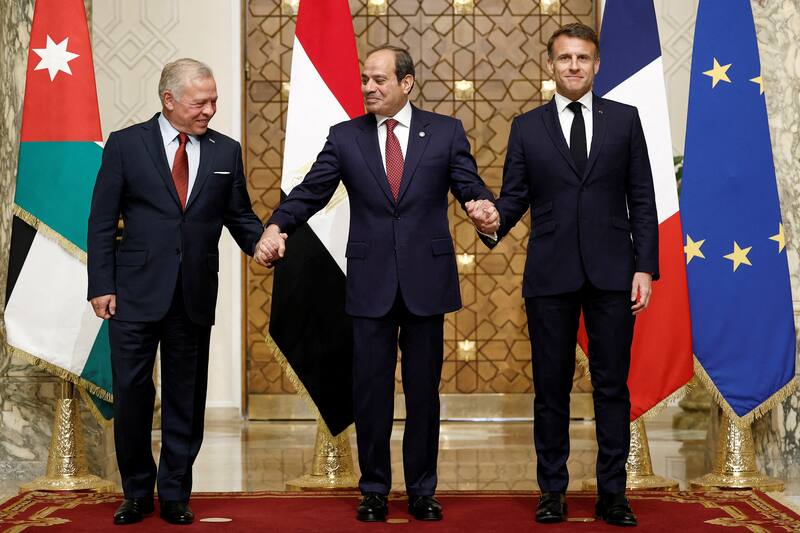 En una declaración conjunta, el presidente francés Emmanuel Macron, el mandatario egipcio Abdel Fatah al Sisi y el rey de Jordania Abdalá II, pidieron también la reanudación “inmediata de un alto el fuego”.