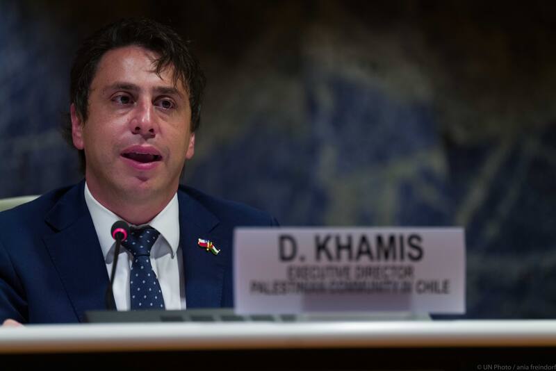 El abogado Diego Khamis Thomas, director ejecutivo de la Comunidad Palestina de Chile, expuso el día de hoy en un evento organizado por la Organización de las Naciones Unidas (ONU) en su sede en Ginebra, el cual reunió diplomáticos de diversos Estados miembros y a organizaciones de la sociedad civil que se relacionan con la problemática Palestina, donde la actual situación en la Franja de Gaza fue uno de los temas de mayor relevancia.