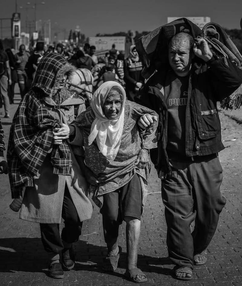 En realidad “200 disparos” es el nombre de la exposición porque son casi 200 días. Lo pasé allí en Gaza cubriendo 200 días. La población es de más de dos millones de personas. Es difícil contar todas las escenas y todo el dolor que atravesamos en esos días. Desde asesinatos, desplazamientos, hambre, hasta ataques dirigidos a civiles, a los médicos, a los periodistas, a los niños. A veces te encuentras sin hogar un día. Nos estaban bombardeando nuestras casas. Fueron 200 días de gritos y llantos. Nos despertábamos cada día, cada día capturábamos esos momentos. Fueron 200 días, pero en realidad ha sido por más de 200 años para nosotros.