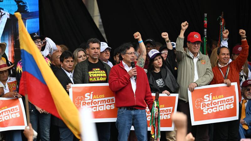 “En cada ciudad de Colombia debe haber una manifestación”, pidió Gustavo Petro el viernes pasado desde Aracataca, el municipio caribeño de las mariposas amarillas y cuna del escritor Gabriel García Márquez, cuando declaró que este martes encabezaría una marcha en Bogotá. Y así lo hizo. El presidente izquierdista lideró un acto en la Plaza Bolívar de Bogotá para abogar por la aprobación de su reforma laboral, mientras en paralelo una comisión del Senado parecía poner la lápida a uno de los proyectos insignia del gobierno.