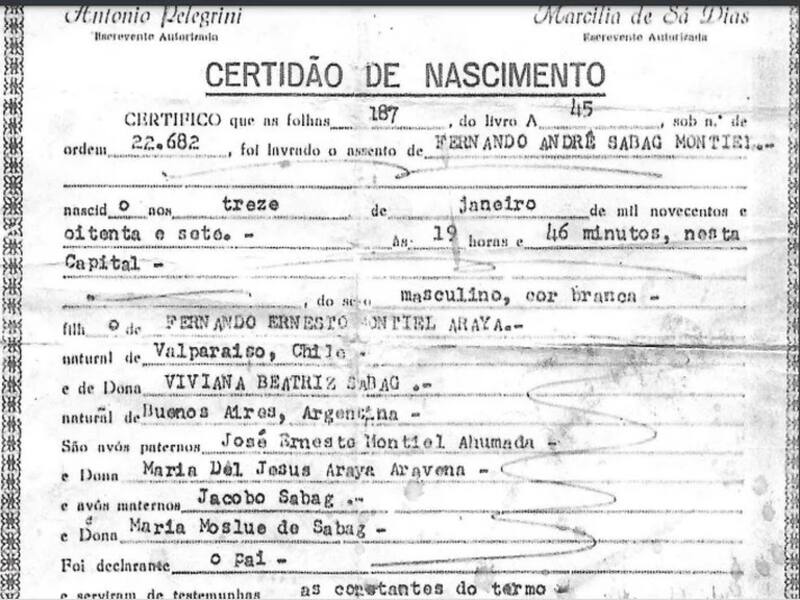 El portal Infobae reprodujo certificado de nacimiento de Fernando Sabag Montiel, donde se señala que su padre es natural de Valparaíso. CNN Brasil destaca además que este último fue objeto de una investigación por expulsión de Brasil en 2020.