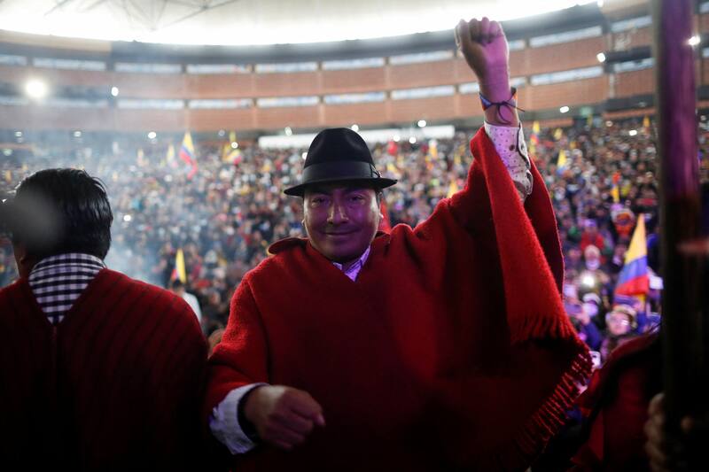 El representante del Movimiento de Unidad Plurinacional Pachakutik (MUPP-18), que se convirtió en uno de los líderes de las manifestaciones contra Lenín Moreno en 2019 -el antiguo delfín de Correa, previo a su quiebre político- y luego de las protestas contra Guillermo Lasso en 2021, se mostró contento por los resultados y no se decantó por nadie.
