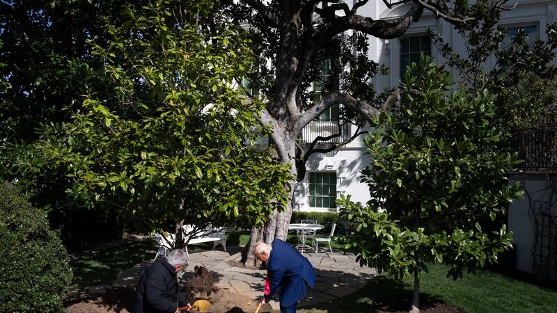 El evento fue capturado en un video compartido por la Casa Blanca en su cuenta de X, donde se observa al presidente cavando con una pala para plantar la nueva especie arbórea.