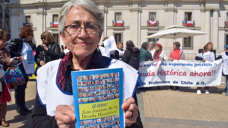 A 43 años de la deuda histórica y en conmemoración a esta fecha, esta jornada de jueves el directorio del Colegio de Profesoras y Profesores junto a docentes afectados que desde hace 17 años se reúnen cada jueves en la Plaza de la Constitución exigiendo una solución, se trasladaron hasta La Moneda para dejarle al Presidente Gabriel Boric un folleto en donde plasmaron los rostros de los afectados.