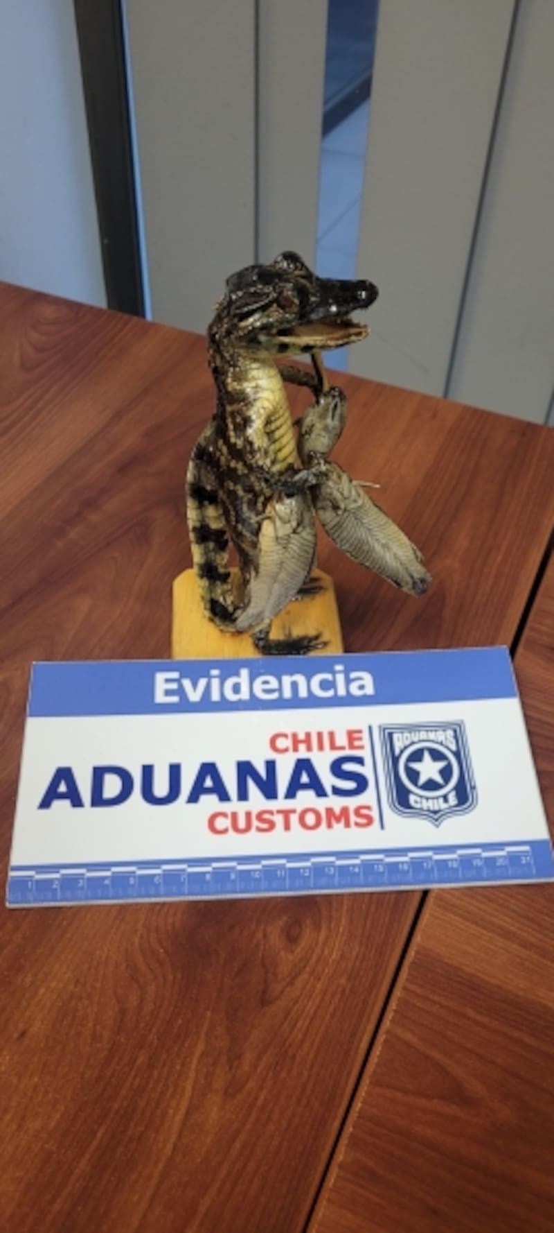 El pasado viernes, personal del Servicio Nacional de Aduanas incautó una cría de yacaré embalsamada en el equipaje de uno de los pasajeros de un bus que transitaba por el paso fronterizo Chungará, en la Región de Arica y Parinacota.
