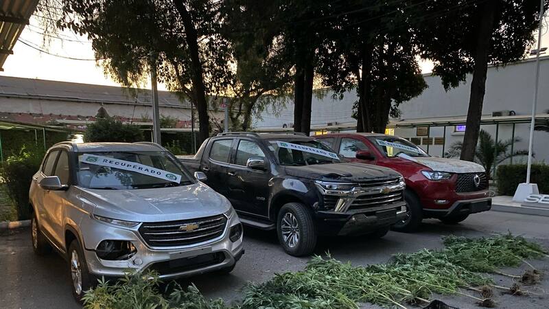 Según informó Carabineros, en el sitio se hizo hallazgo de “dos camionetas y un Station Wagon con encargo por robo, correspondientes al delito investigado, como asimismo 20 plantas de marihuana y marihuana a granel procesada, siete cartuchos de escopeta, dos notebook, dos teléfonos celulares y dos patentes con encargo vigente por robo”.