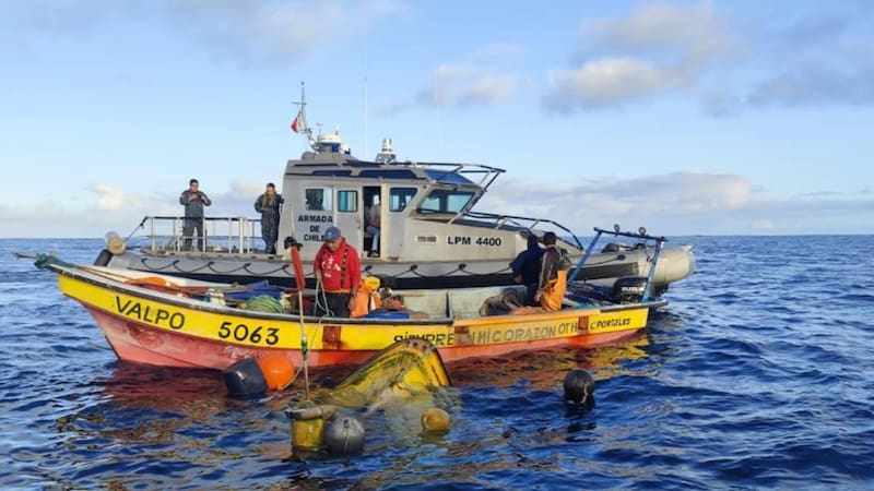 Además, el capitán de Fragata del puerto de Valparaíso, Jacob Silva, aseguró que “uno de los botes se encuentra volcado y semi hundido, sin tripulación a bordo, a la espera de personal y embarcaciones que permitan intentar su reflotamiento”.