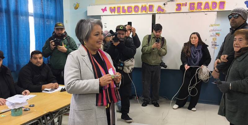 La candidata Jeannette Jara, representante del Partido Comunista y Acción Humanista, acudió a votar al liceo Poeta Federico García Lorca de la comuna de Conchalí.