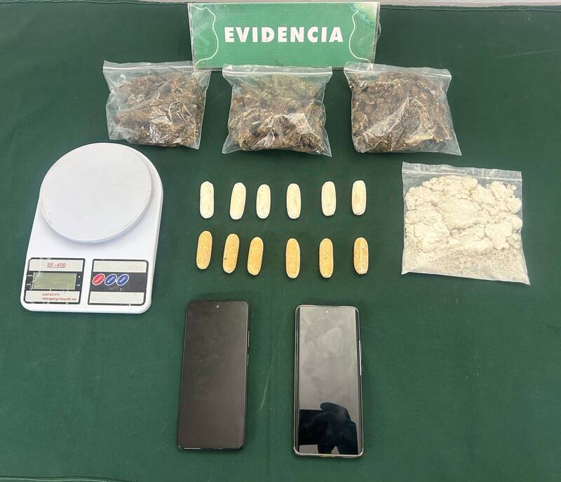 Por este hecho, ambos hombres de nacionalidad colombiana -identificados con las iniciales A.M.L., de 32 años y D.L.M.V., de 39 años- fueron detenidos por el delito de microtráfico de drogas y se incautó la cantidad de 386.4 gramos de pasta base y 136.9 gramos de marihuana. Además de los ovoides.